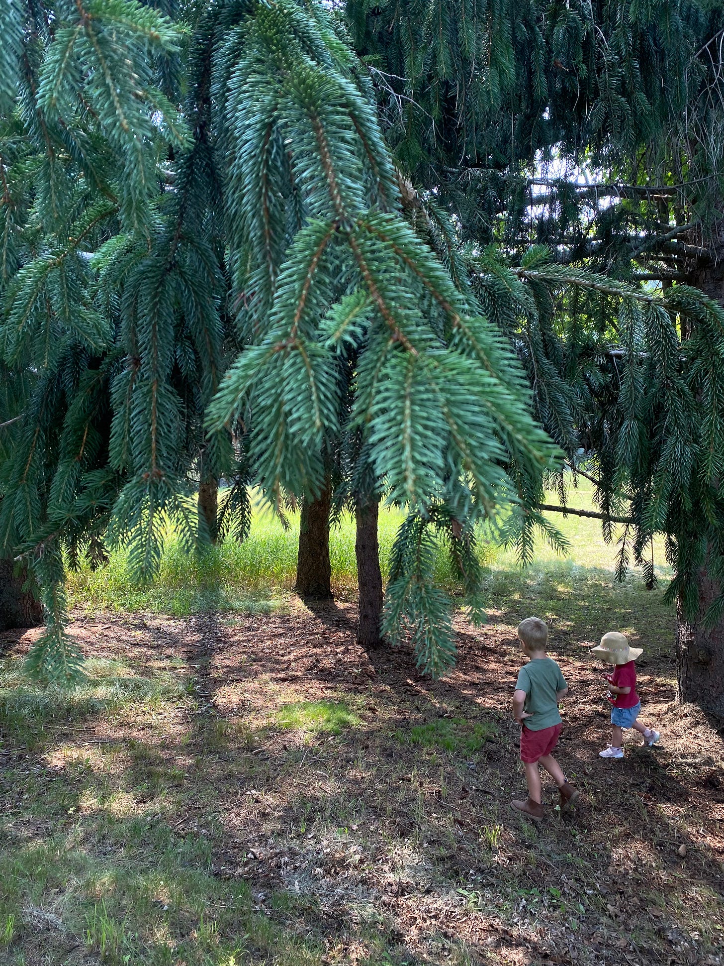 We met while he was standing guard in the road, keeping an eye on the folks contracted to trim back his trees for the electrical company. The tree service trucks lined the road and the man, who introduced himself as Joe, stood watch below, keeping an eye on each move. “My wife and I planted these trees forty years ago,” he told me, “Norway Spruce.” The trees towered over us in a gorgeous row, their shaggy boughs hanging low and long, brushing the ground. His house, an old farmhouse on a sprawling lot just around the corner from my own, barely visible through the greenery.